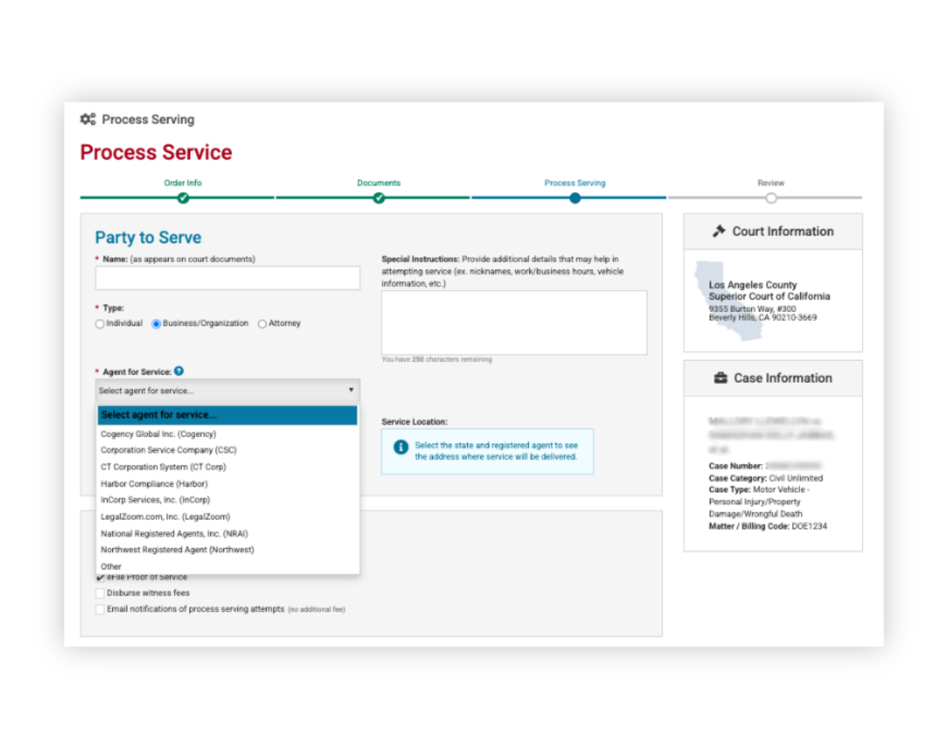 Speed up your case initiations by ordering eFiling, Service of Process, and eFiling the proof—all in one transaction.